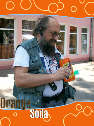 Онотолей проверяет силу оранджсоды, он недоволе!1адин она кончается, до завтра не хватит111